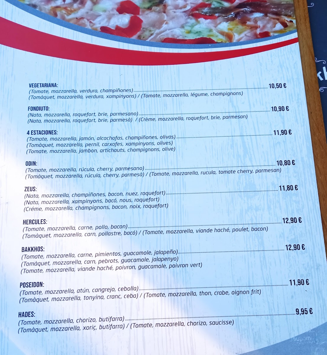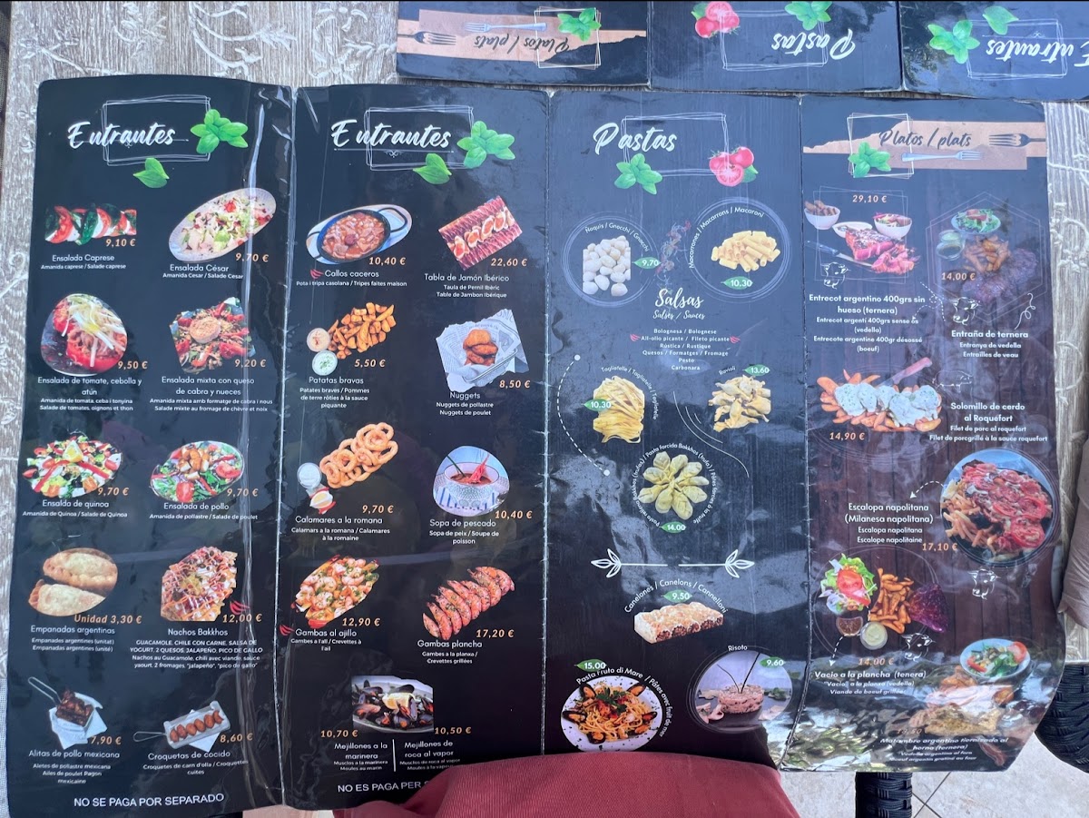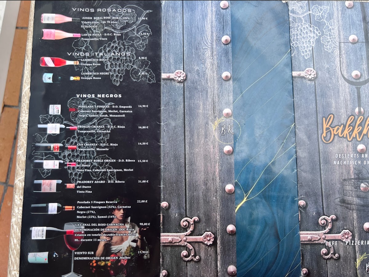Bakkhos Café-Pizzeria-restaurante offers a menu that blends casual dining with comforting, familiar flavors, making it a great spot for relaxed meals throughout the day. The selection includes a mix of hearty pizzas, traditional Spanish tapas, and Argentine-inspired dishes, all served in a welcoming and lively atmosphere.